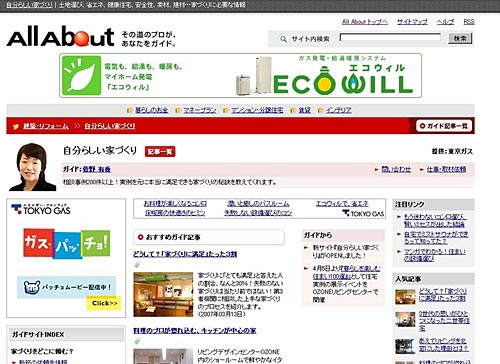 東京ガス株式会社(本社:東京都港区、代表取締役社長:鳥原光憲、東証・大証・名証第1部、証券コード:9531、以下「東京ガス」)と、株式会社オールアバウト(本社:東京都渋谷区、代表取締役社長 兼 CEO:江幡哲也、ジャスダック証券取引所、証券コード:2454、以下「オールアバウト」)は、共同で、専門家がガイドする総合情報サイト「All About」内において、新ガイドサイト「All About 自分らしい家づくり」を開設します。
