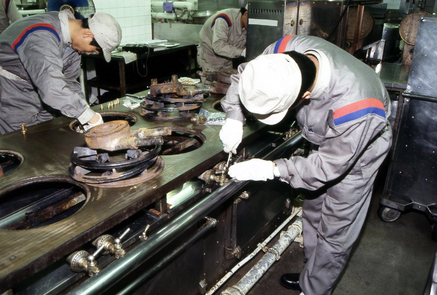 日本で初めて大規模なLNG輸入に成功した一方、どうやって社会に天然ガスを届けるかという新たな難関が立ちはだかる。それまで家庭や商店、オフィス、工場で使う都市ガスの機器は原料となる石炭や石油の熱量に対応するよう、設定されていた。すなわち、天然ガスを原料とした都市ガスを使用する一軒一軒を訪れて既存のガス機器の熱量設定を手作業で変更する必要があった。考えただけで気が遠くなるだろう。そんな数しれぬ困難を前にこの一大プロジェクトは、熱量変更と命名された。そんな状況の中、ついに1969年、熱量変更開始のXデーに向けてプロジェクトが動きはじめる。社会に天然ガスを普及するには、他にも検討事項が山ほどあった。どうやって安定したガス源を確保するか、どうしたら限られた作業員で膨大な手作業を捌けるか、どの地区から着手するのが現実的か。わずか11名で構成された少数精鋭のメンバーが、現場での熱量変更をするための数百もの検討事項を一つひとつ精査していった。彼らを突き動かしていたのは、「社会に天然ガスという新しいエネルギー源を届ける」という強い使命感であった。さらに、欧州各国とも細やかに連携。先行事例から多くの知見を得ながら、テストケースを丹念に積み上げ、ついに大規模プロジェクトへと踏み切っていった。