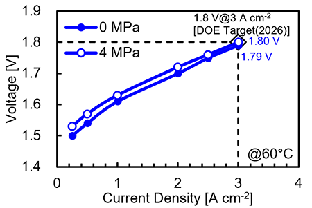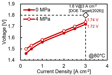 米国エネルギー省(DOE)の2026年の性能目標を達成。高圧下でも優れた水電解性能を実現。