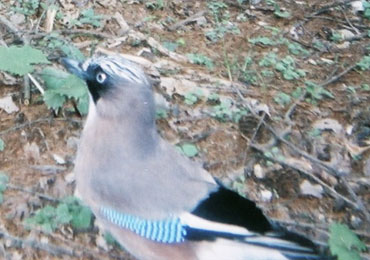 このカケスは、秋にどんぐりをたくさん地中に埋め込んで蓄えることで有名です。