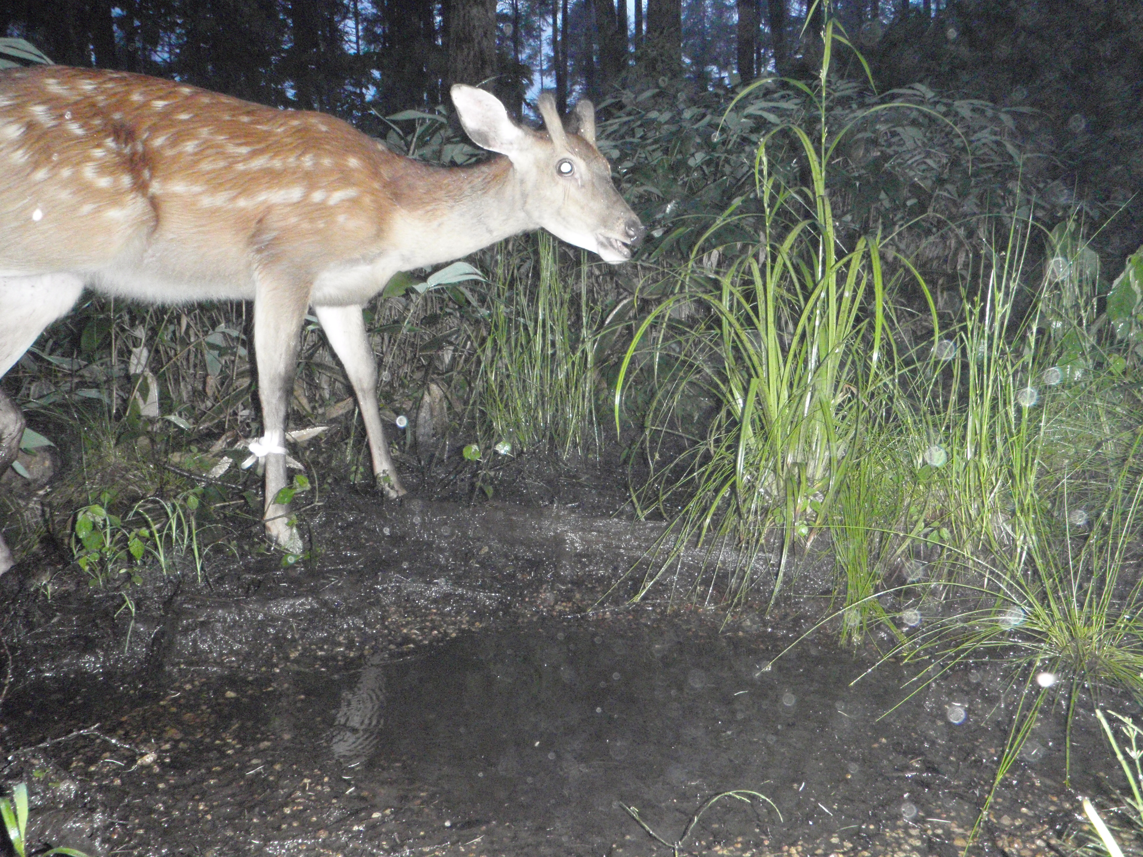 ニホンジカの個体数増加の傾向をモニタリングするとともに、アライグマやハクビシン等の外来生物の広がりもセンサーカメラを活用し把握しています。また、哺乳類、鳥類、両生類相もあわせて確認し、生物多様性調査と保全を実施しています。