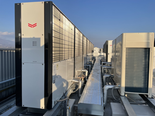 店舗屋上に設置されたスマートマルチ(ハイブリッド空調)