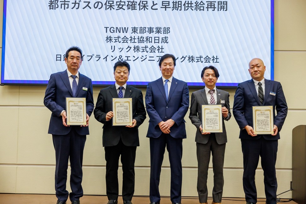 2025年1月28日・1月29日に埼玉県八潮市にて発生した大規模道路陥落を受けたガス供給停止・早期復旧に向けて4社での協業を開始。各社が役割分担をして昼夜にわたって供給再開工事を展開し、わずか2日半で供給を再開しました。八潮市長からは「4社のうち1社でも欠けていたら、早期供給再開は成し得なかった」と感謝の言葉をいただきました。