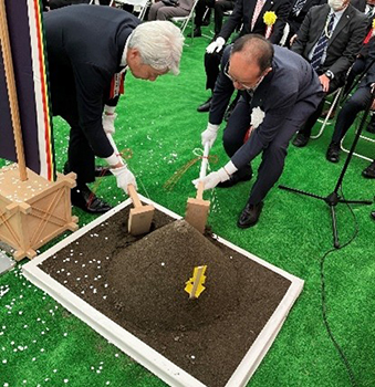 <起工式における鍬入れの様子>