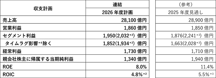 *2:2026年度計画( )カッコ内およびROICは、営業外・特別損益に計上想定の固定資産売却損益(不動産)82億円を含めた金額。
