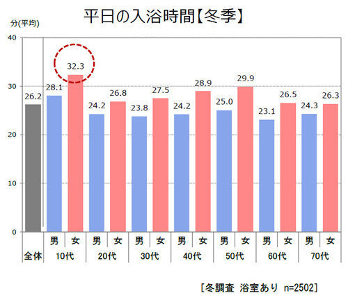 「シャワー入浴派」は30代以上で増加し、年代差が縮小