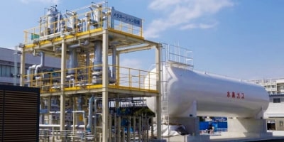 e-メタンとは、再生エネルギーなどで製造された水素(H2)と、発電所などから排出された二酸化炭素(CO2)を原料に合成されるメタンのこと。排気ガス等から回収したCO2を原料とするため、燃焼時にCO2を排出しても実質的に大気中のCO2は増えない。そのため、社会全体のCO2排出量を抑制できるカーボンニュートラルなエネルギーとして期待されている。東京ガスは、米国・豪州・東南アジアなどの地域においてeメタンプラントの建設プロジェクトを推進中であり、2030年までのプラント運転開始を目指している。