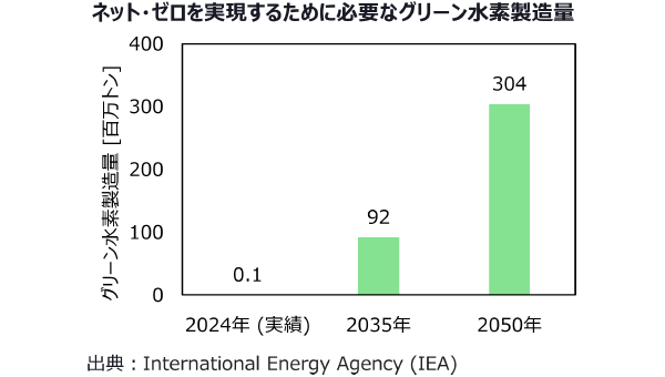 2050年までに世界全体でネット・ゼロを実現するためには、膨大な量のグリーン水素製造が必要不可欠です。